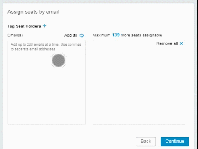 - Type in the email addresses of new seat holders in the Email(s) column.